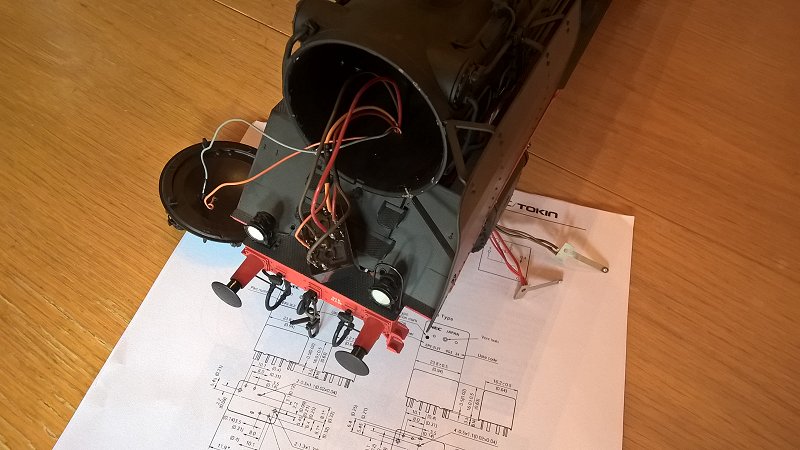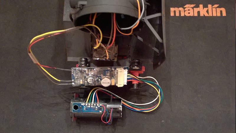 Kabel vom Decoder zum alten Rauchsatz, diese schalten später ein Relais für den neuen Rauchsatz: